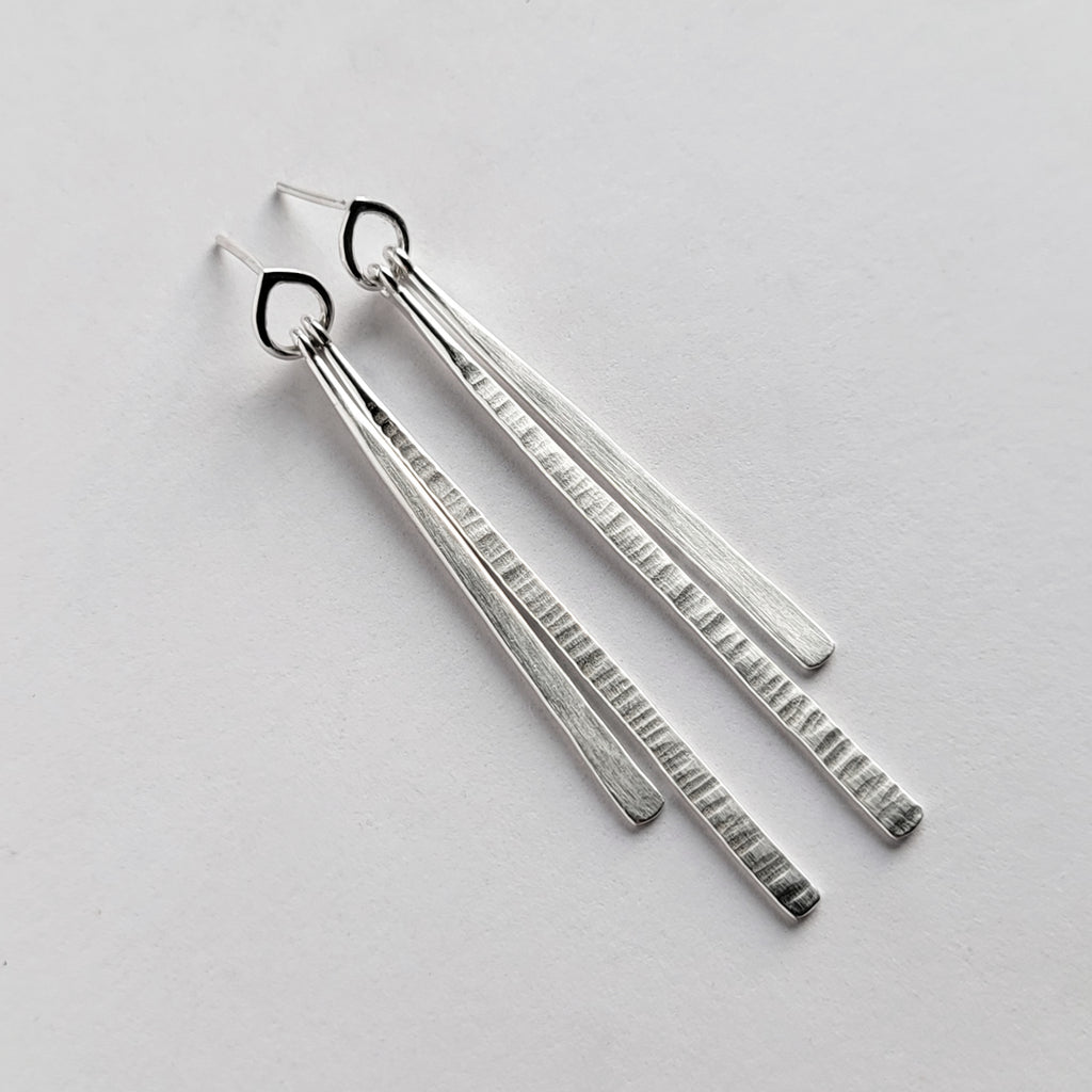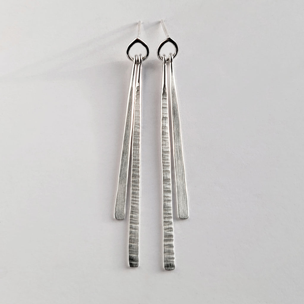 These elegant forged silver earrings are keeping it simple with contrasting hammered textures.